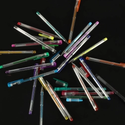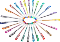 Fedezze fel a kreativitást a 25 darabos zseléstoll-készlettel íráshoz és rajzoláshoz. Talál benne csillogó, metál és fluoreszkáló tollakat, valamint klasszikus színeket. A gazdag árnyalatoknak, a folyamatos tintafolyásnak és a praktikus műanyag toknak köszönhetően mindig kéznél lesz a megfelelő tónus iskolai jegyzeteléshez, bullet journalhoz, képeslapokhoz és közös alkotáshoz a gyerekekkel.