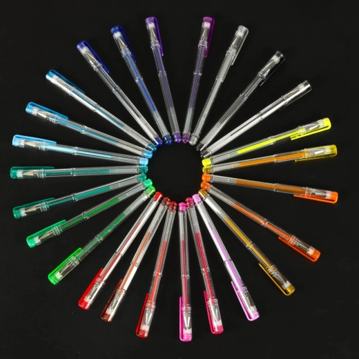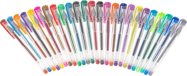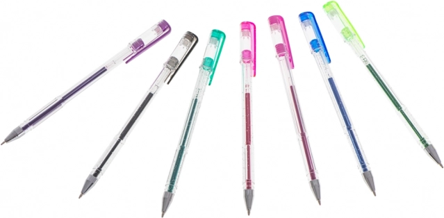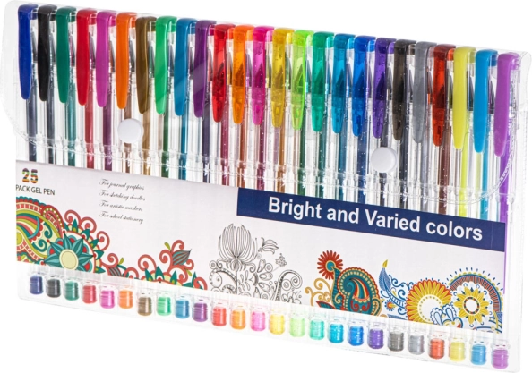 Ez az univerzális zseléstoll-készlet ideális gyerekeknek, diákoknak és felnőtteknek egyaránt. 25 gondosan válogatott darabot tartalmaz: 12 csillogót látványos díszítéshez, 7 metált stílusos kiemelésekhez, 3 fluoreszkálót feltűnő jelöléshez és 3 klasszikus színt (fekete, kék, piros) a mindennapi íráshoz. Az átlátszó tolltest lehetővé teszi a tinta szintjének ellenőrzését, a finom hegy pedig precíz vonalakat biztosít.