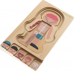 Ez az egyedülálló fa puzzle úgy lett tervezve, hogy támogassa a gyermekek kreativitását, logikus gondolkodását és kézügyességét. Minden réteggel többet tanulnak az emberi test felépítéséről.