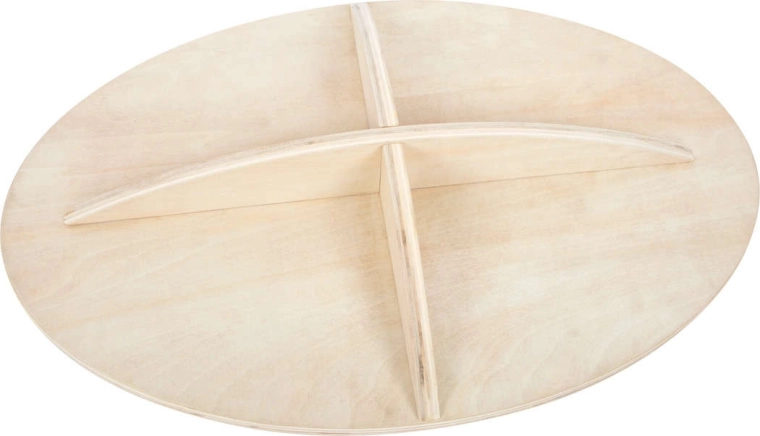 A masszív fa szerkezet sima felülete kellemes tapintású és ellenálló a mindennapi használatban. A félgömb/lekerekített alap finom ringó mozgást hoz létre, amely aktiválja a mély stabilizáló rendszert és támogatja a helyes testtartást. Ideális 5 éves kortól, könnyű edzéshez otthon vagy óvodában.