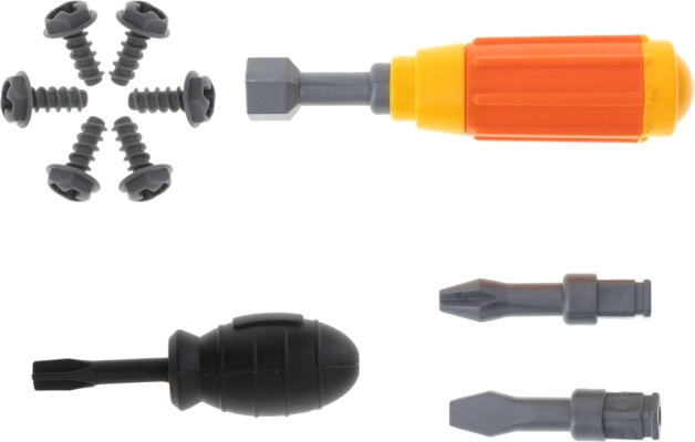A készlet két csavarhúzó eszközt tartalmaz, amelyek lehetővé teszik a traktor alkatrészeinek cseréjét, és lehetőséget adnak az elemek össze- és szétszerelésére.