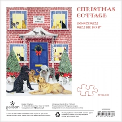 A „Christmas Tree Cottage” motívum játékos kutyákkal és macskákkal ünnepi hangulatot és a kirakás örömét hozza az otthonába.