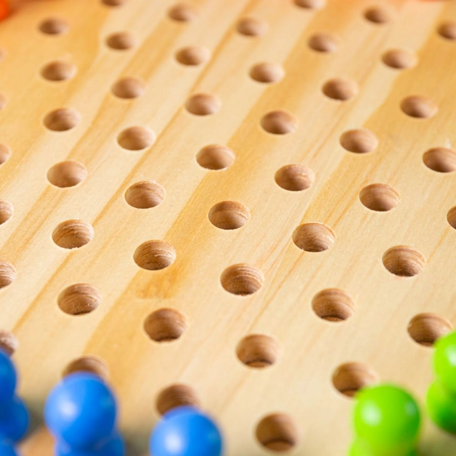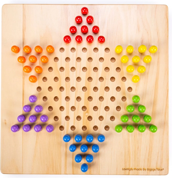 Klasszikus társasjáték az egész családnak, minőségi fa kivitelben. Fejleszti a logikát, a koncentrációt és a finommotorikát, lenyűgöz élénk színeivel és kellemes természetes anyagával. Tartalmaz játéktáblát és 60 bábut 2–6 játékos számára.