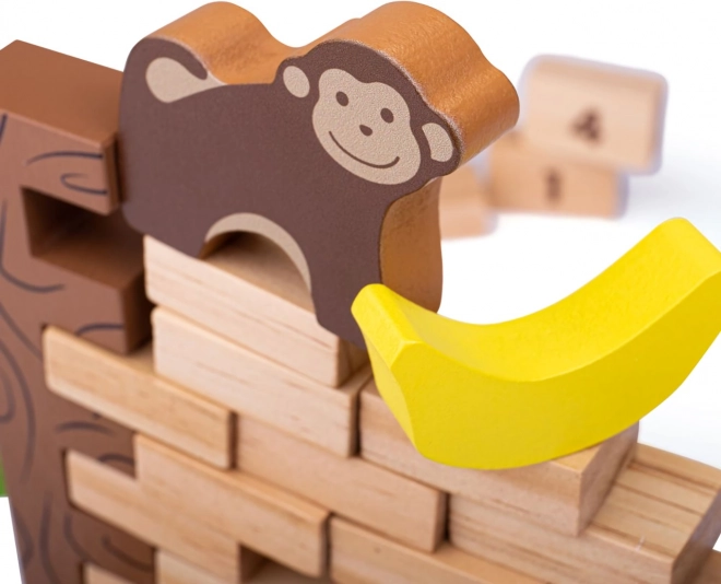Fedezze fel az okos játékot, amely egyszerre szórakoztat és tanít. A Fa motoros játék Zuhogó dzsungel az izgalmas elemkifeszítést pontszámolással ötvözi. A cél, hogy a fal ne dőljön le, miközben a számozott téglákból minél több pontot gyűjtünk. A természetes fa design és a vidám majom- és banánmotívum újrajátszásra csábít.