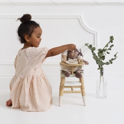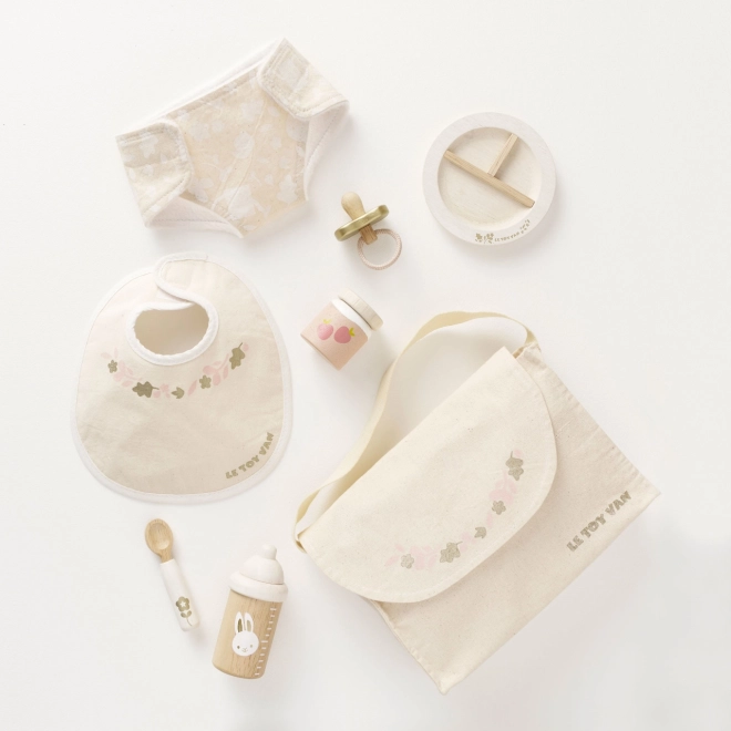 A babák és plüssök gondozása soha nem volt ennyire szórakoztató és inspiráló. Le Toy Van gondozó készlet teljes felszerelést kínál a kis gondozóknak. Tartalmaz egy textil pelenkázó táskát dekoratív mintával, cumit, partedlit, pelenkát, tányért, kanalat, bébiételt és cumisüveget. Minden darabot fenntarthatóság és minőség figyelembevételével készítettek, hogy sok óra játék során kitartson.