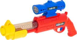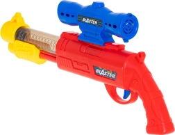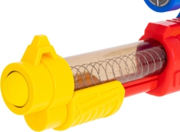 A rugós mechanikájú kézi blaster könnyen tölthető és célozható. A pehelykönnyű hablabdák kíméletesek és alkalmasak beltéri játékra.