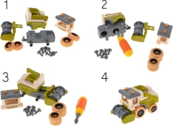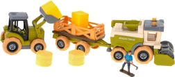 A traktort, a kombájnt és az utánfutókat könnyen szét lehet szedni, majd csavarhúzóval és akkus fúróval újra össze lehet rakni. A gyerekek gyakorolják a finommotorikát, és megértik a gépek felépítésének alapelveit.