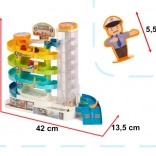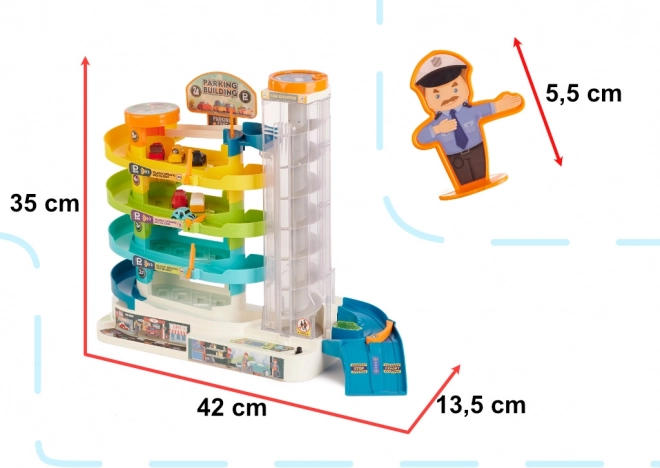 Többszintes garázs, lift, utak, lehajtók, díszítőelemek és matricák – mindez egy mutatós dobozban, kiváló ajándék 3 éves kortól.