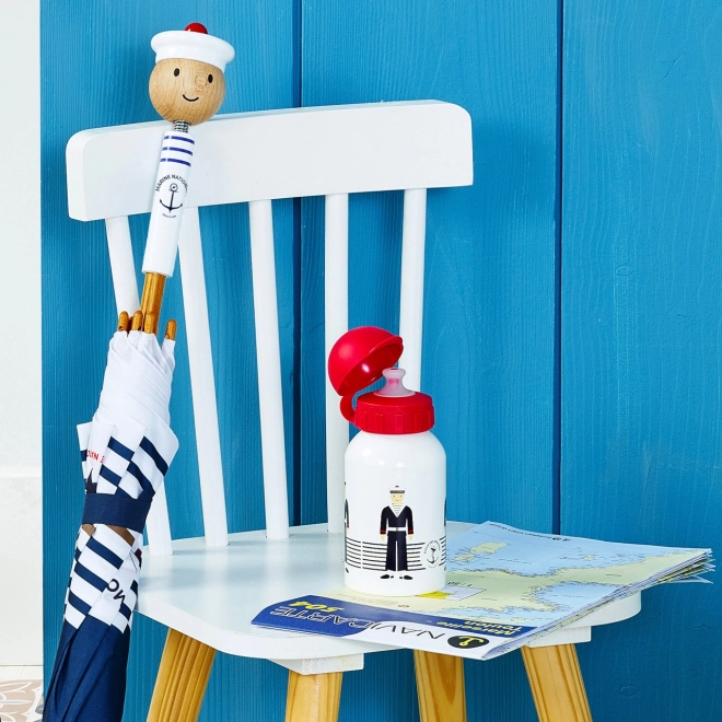 Ez a tengerészeti témájú italos palack a funkcionalitás és dizájn tökéletes kombinációja. Tartós alumíniumból készült, és praktikus használatot kínál mindennapi kalandokhoz. A ivókűp fedéllel biztosítja, hogy az ital frissebb maradjon és szennyeződésmentes legyen, ami ideális gyermekek és tengerész rajongók számára is.