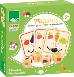 Szórakoztató családi kockajáték, a Vilac – A szüret napja 3 éves kortól hívja a gyerekeket gyors dobásokra és receptek gyűjtésére. A készlet 55 játékkártyát és 4 kockát tartalmaz, 2–6 játékos részére. Egyszerű szabályok, szép kivitel és zöldséges illusztrációk fejlesztik a számolást, a koncentrációt és a megfigyelőképességet.