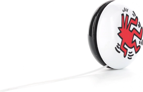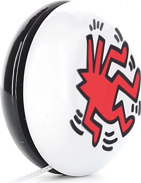 A vörös figurával/kiskutyával készített markáns grafika modern street‑art energiát visz a klasszikus játékba, és a jojót stílusos kiegészítővé, illetve gyűjtői darabbá teszi.