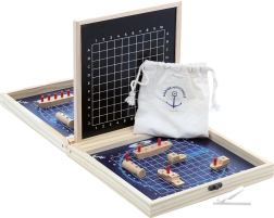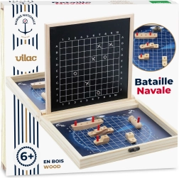 Fedezze fel a szépséget és a stratégiát ezzel a kidolgozott játékkal a Vilactól, amely a tengeri csatát otthonába hozza. Praktikus fa bőrönd nemcsak a játékelemek tárolására szolgál, hanem játéktérként is működik. A krétával rajzolható felületek lehetővé teszik, hogy könnyen nyomon kövesse, hogyan halad a csatája. Tartós fa darabok garantálják a hosszú élettartamot, és az attraktív dizájn a gyerekeket és felnőtteket egyaránt lenyűgözi.