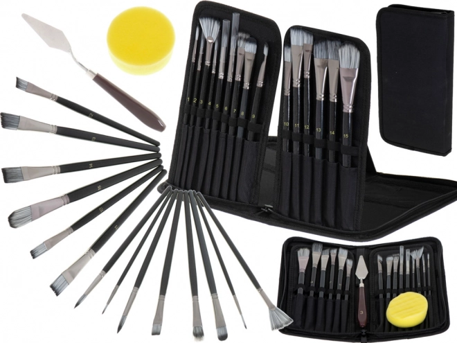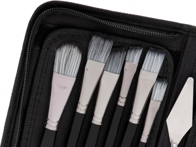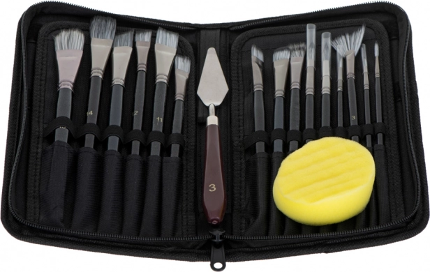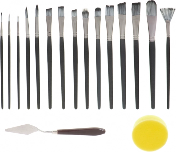 - Sokoldalú készlet: 15 különböző vastagságú ecset, egy szivacs és egy festéshez használt spakli teszi lehetővé a különféle művészeti stílusok közötti váltást.