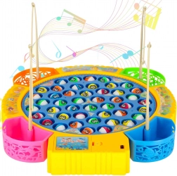 Szórakoztató családi horgászjáték forgó platformmal és zenével, amely tartalmaz 45 halacskát és 4 horgászbotot 1–4 játékos számára. Fejleszti a reflexeket, a koncentrációt és a kézügyességet, színes, kivehető pohárkákkal a fogásokhoz és hangeffektekkel. Működéséhez 3× AA elem szükséges.