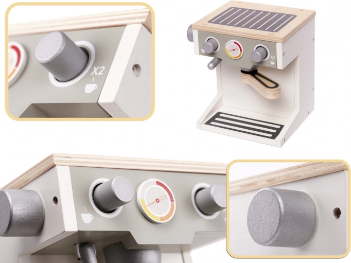 A gyerekek számára készült fa kávéfőző tökéletes módja annak, hogy ösztönözzék kreativitásukat és segítsenek megtanulni a felnőttek kávékészítési szokásait. Ez a kivételes kávéfőző valósághű funkciókat tartalmaz, mint a portafilter és az állítható gombok, amelyek lehetővé teszik a kávéfajták kiválasztását. A gyerekek még tejeskávét is készíthetnek az integrált tejhabosítóval.