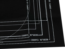 A fehér jelölések pontosan mutatják az 500–2000 darabos kirakók méreteit, így könnyű a kompozíció megtervezése.