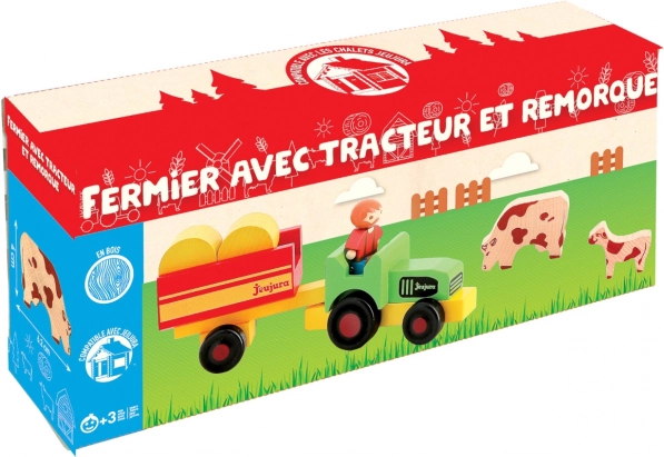 Adj gyermekeidnek végtelen sok játéklehetőséget a Jeujura fa farmer figuráival. Ez a készlet mozgatható farmfigurákat, traktort pótkocsival és két állatot tartalmaz. Nagyszerű a gyerekek fantáziájának fejlesztésére.