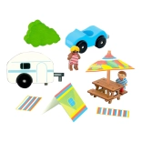 Keltsd életre építőkészletedet a Jeujura Kemping nyaralás szettel, amely végtelen lehetőségeket kínál. Ez a szett két mozgatható figurát, egy autót, egy lakókocsit és különféle kiegészítőket tartalmaz, amelyek remekül illeszkednek a tematikus építményekhez. A figurák mozgatható végtagokkal rendelkeznek, ami több játéklehetőséget biztosít. Masszív fából készülnek és környezetbarát festékkel kezeltek.