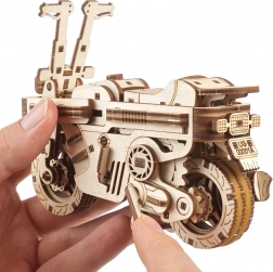 Az UGEARS összeszerelhető robogója egy okos, fa mechanikus építőkészlet, amely ötvözi a szórakozást, a technikát és a dizájnt. Az átgondolt, kompakt felépítésnek köszönhetően az érzékeny részek könnyen összecsukhatók, így a modellt magával viheti – akár a hátizsák zsebében is. A felhúzós meghajtás fém rugóval egy felhúzással akár 2 métert is megtesz.