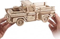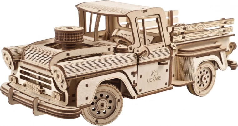 Ismerd meg a klasszikus erőt és eleganciát: ez a fa, mechanikus pick-up modell a UGEARS-től ötvözi a precíz kivitelezést, az erős rugómotort és a valósághű funkciókat, köztük a hátramenetes váltót, a differenciálművet és a nyitható ajtókat és motorháztetőt. Egy felhúzással akár 6 métert is megtesz, és csaknem 0,5 kg rakományt szállít.