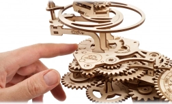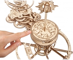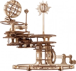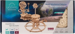 A UGEARS tellúrium egy gyönyörű 3D fa mechanikus modell, amely a kopernikuszi rendszer elveit a kezedbe adja. A kézi karral mozgásba hozod a fogaskerék-rendszert, amely valós arányban ábrázolja a Föld forgását, a Hold keringését és a Nap körüli mozgást, beleértve a Föld tengelydőlését és a Hold keringési síkját.