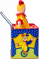 Ez a zenedoboz a kašpárekkel lenyűgözi cirkuszi grafikájával és tartós szerkezetével, ami hosszú távú szórakozást ígér. Ha megforgatod a kart, megszólal a dallam, ami mosolyt csal minden gyermek arcára.