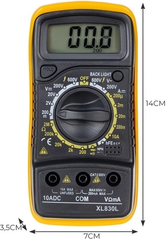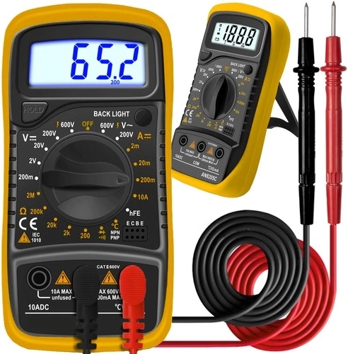 Az univerzális digitális multiméter széles skálájú elektromos mérésekhez lett tervezve, így elengedhetetlen eszköz minden műhelyben vagy otthoni barkácsolásnál. Különféle funkciókat kínál a feszültség, áram és ellenállás mérésére, beleértve a diódák és tranzisztorok tesztelését is.