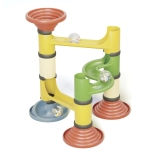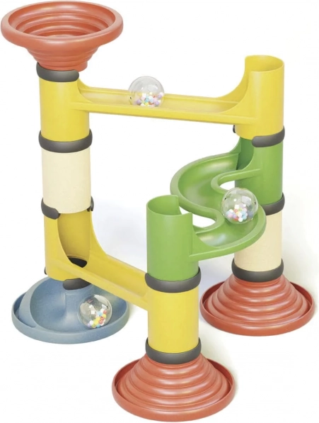 Ezzel az egyedülálló építőkészlettel a gyerekek gyorsan és intuitívan építhetnek különböző golyópályákat az egyszerű csatlakoztatásnak köszönhetően. Minden alkatrész innovatív bioplasztikból készült, amely fa szálakat és műanyagot kombinál. Ez a környezetbarát választás jelentősen csökkenti a CO2-kibocsátást a gyártás során, és az anyagok 100%-ban újrahasznosíthatóak. A játék nemcsak fának néz ki és annak illata van, hanem tartós és kellemes tapintású is.