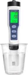 A készülék vízálló burkolattal van ellátva, amely lehetővé teszi a pontos pH és hőmérséklet mérését a vízben. Automatikus hőmérséklet kompenzáció (ATC) biztosítja a pontos eredményeket a folyadék hőmérsékletétől függetlenül. A tesztelő három gombelemről működik, és automatikus kikapcsolás funkcióval rendelkezik 5 perc tétlenség után, ami növeli az elemek élettartamát. Ez a tesztelő ideális különböző alkalmazásokhoz, beleértve az ivóvíz, akváriumok és medencék minőségi ellenőrzését. Kompakt és könnyű kialakítása egyszerű szállítást és tárolást tesz lehetővé.Specifikációk