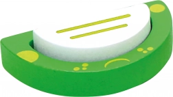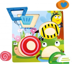 A vidám, színes tavacska motívumú, fa térbeli kirakó 3 éves kortól ideális segédeszköz. Az elemeket a megfelelő sorrendben kell a masszív alapba illeszteni, ami támogatja a sorrendiség megértését és a koordinációs képességek fejlődését. A tömör fa és a vastag rétegelt lemez minőségi kialakítása tartós társsá teszi ezt a játékot a mindennapi játékhoz.