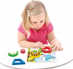 Otthonra és óvodákba egyaránt alkalmas – az egyszerű kirakási elv önállóságra ösztönzi a gyerekeket, és természetes módon fejleszti a türelmet és a koncentrációt. A biztonságos, sima élek és az élénk színek segítik a formák és színek közötti jobb tájékozódást.