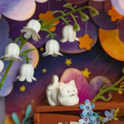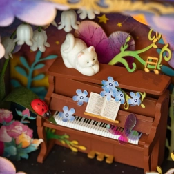 Ez a bájos miniatűr dioráma lehetővé teszi, hogy elmerüljön a fantázia világában. A szekrény belsejében meleg világítás található, amely varázslatos mélységet kölcsönöz a jelenetnek. A szekrény alsó részén található praktikus rekesz lehetővé teszi az apró tárgyak tárolását. Az összeszerelés tartalmazza a rétegelt lemezekkel és karton darabokkal végzett munkát, amelyeket könnyen előkészíthet. Az elektromos alkatrészek már előre össze vannak szerelve, ami megkönnyíti a telepítést. Csak ollóra van szüksége, mivel a többi eszköz a csomagban található.