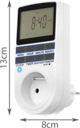 A digitális időkapcsoló hasznos minden háztartásban, irodában vagy üzletben. Lehetővé teszi, hogy irányítsa a készülékek üzemidőt, és 8 gombbal és resettel van felszerelve a könnyű programozáshoz. Az olvasható kijelző segítségével könnyedén beállítható az aktuális idő és program.