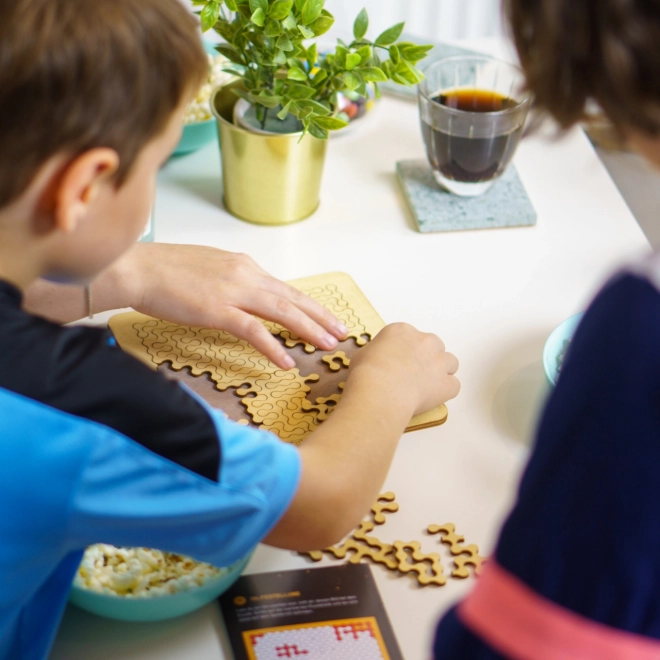 Ez a dizájnos fa kirakó kihívás mindenkinek, aki szereti az okos fejtörőket. Minden lépés a megoldás felé egyre összetettebb, a befejezéshez pedig átgondolt stratégia, türelem és éles megfigyelés szükséges. A masszív anyagnak és a precíz lézervágásnak köszönhetően az elemek tökéletesen illeszkednek, az összerakás folyamata pedig gördülékeny és élvezetes.