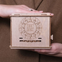 Nyírfából készült, ez a rejtvény ötvözi a természet szépségét a mechanikai precizitással. A stílusos konstrukció hosszú élettartamot és esztétikai vonzerőt biztosít.