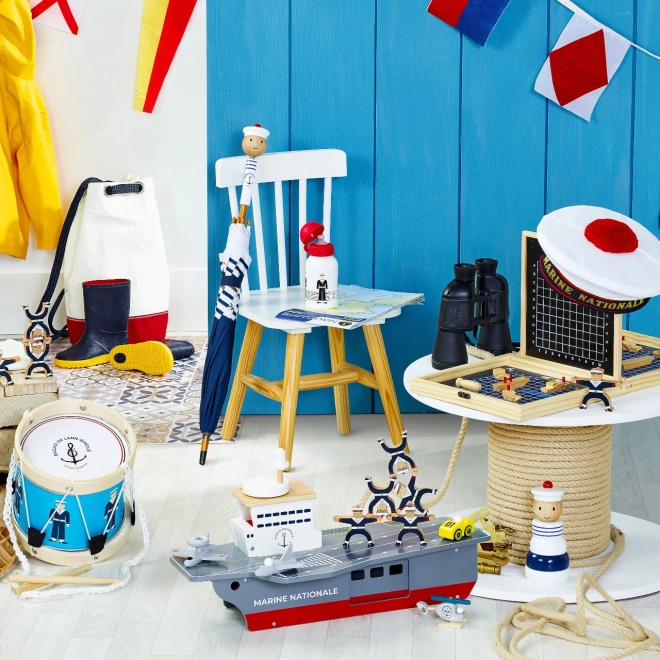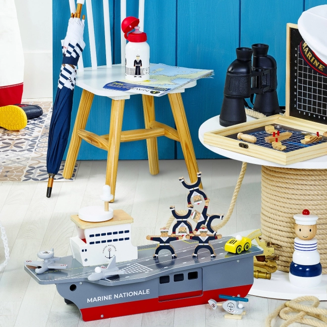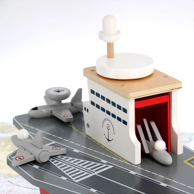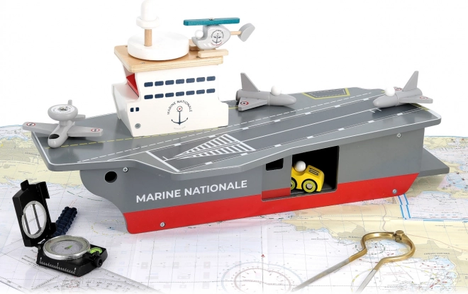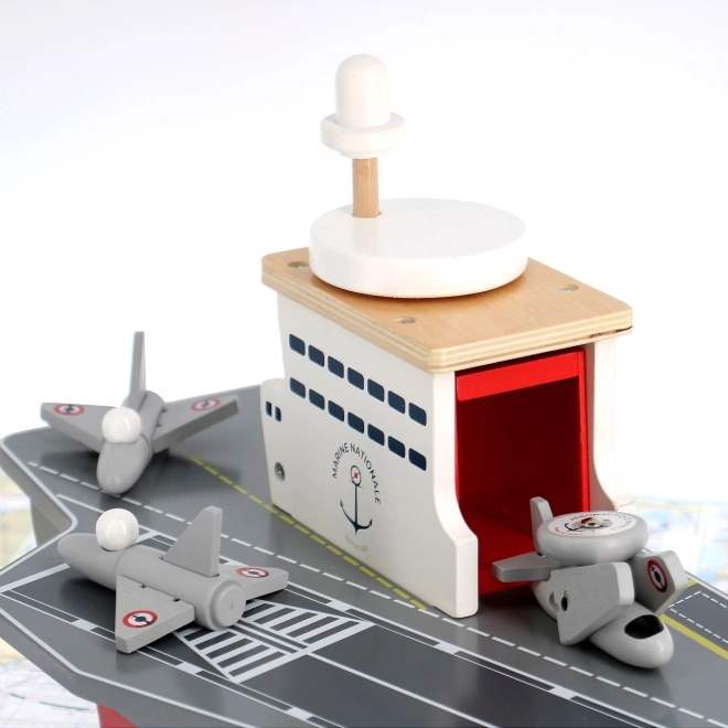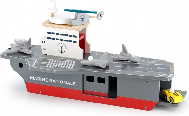 Ez a precízen kidolgozott fa repülőgép-hordozó hűen idézi a valódi hordozókat, a Marine Nationale jelöléseivel együtt. Tartós, mégis könnyű rétegelt lemezből készült, ezért stabil, és a kisebb gyerekek is könnyen kezelhetik. A realisztikus, festett részletek és az átgondolt megoldások ösztönzik a képzeletet, és hiteles tengeri élményt nyújtanak.