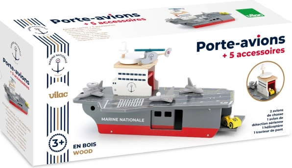 Vesd magad a nyílt tengerre a Vilac fa repülőgép-hordozójával, amelyet a Francia Haditengerészettel együttműködésben fejlesztettek. Funkcionális felvonót, tágas alsó fedélzeti tárolót és 5 darab, Marine Nationale témájú tartozékot kínál órákon át tartó kreatív játékhoz.