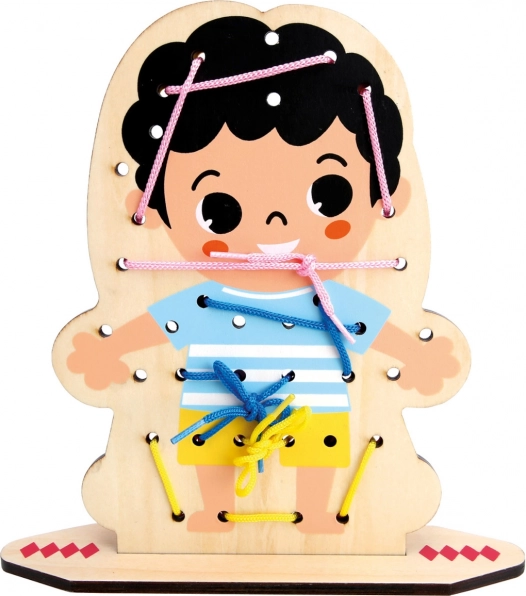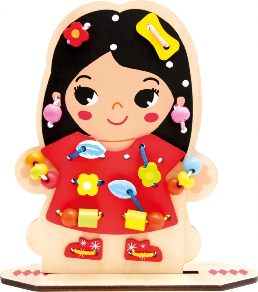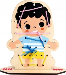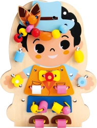 Adjon a gyerekeknek egyszerre szórakozást és tanulást. A Bino fa fűzős játék kétoldalúan nyomtatott táblával változatos tevékenységeket kínál – átfűzés, begombolás és színes elemek kombinálása. Kompakt méreteinek köszönhetően otthonra és utazáshoz is ideális.