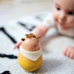 Interaktív játék belső csengővel, amely minden mozdulatnál serkenti a hallást. Az önmagát visszaállító mechanizmus fejleszti a motorikus készségeket.