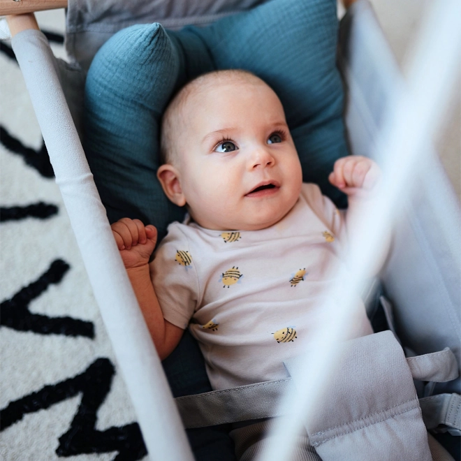 A Tenger a legkisebbeknek kivételes kényelmet biztosít gyermekének. Puha, leválasztható párnával rendelkezik, amely pántokkal van rögzítve és hárompontos övvel a maximális biztonság érdekében. A füstös kék szín harmóniában a gondosan megmunkált tömör fával minden helyiségnek vagy kertnek varázst kölcsönöz.