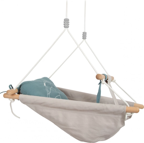 A fekvő felület anyaga optimálisan alkalmazkodik a gyermek testformájához és könnyen karbantartható. A szerkezet kiváló minőségű természetes anyagokból készült, hangsúlyozva az ökótudatosságot és a biztonságot. A hinta teherbírása akár 30 kg is lehet, ami hosszú távú használatot biztosít.