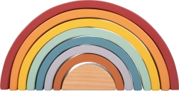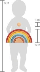 Ez a fa szivárvány kiváló lehetőséget nyújt a gyermekek számára képzelőerejük és motoros készségeik fejlesztésére. 8 színes ívet és egy fa golyót tartalmaz, amely taneszközként szolgálhat a méretek és színek megértéséhez. A játék a Montessori pedagógia elvei szerint készült és ideális a szabad játékhoz.