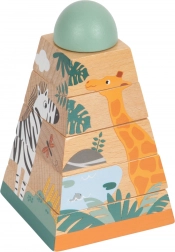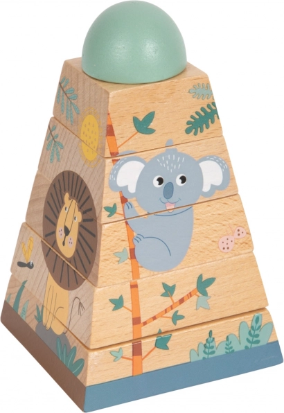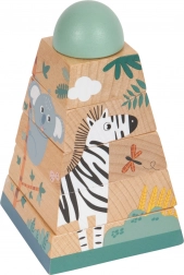 Ez a tartós fából készült játék lehetőséget nyújt a gyermekeknek motorikus készségeik és kéz-szem koordinációjuk fejlesztésére. Hat darabból áll, melyek helyes összerakása vidám állatokat tár fel, amelyek a szafarin élnek. A torony nemcsak oktatási eszközként kiváló, hanem esztétikailag is megjeleníti színes, vidám dizájnját minden gyerekszobában.