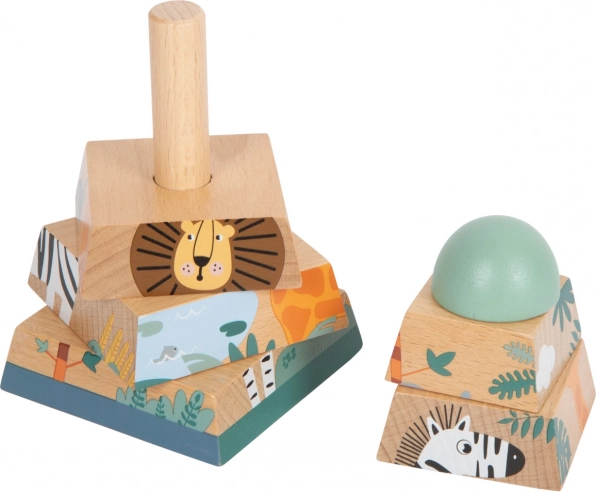 Ez a fa safari torony a gyermekek finom motorikus képességeinek és térbeli érzékelésének fejlesztésére lett tervezve. A színes blokkok rakosgatása közben a gyerekek barátságos afrikai állatokat fedezhetnek fel, mint például a zsiráf, zebra, koala és a oroszlán.