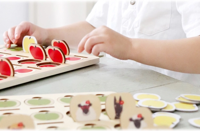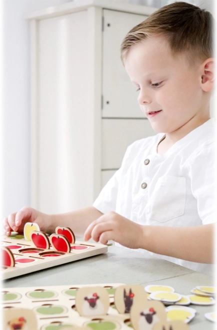 Színes állat- és almaillusztrációk a strapabíró táblákon, amelyek játékra csábítanak, és bírják az intenzív gyerekkéz-használatot. Ideális otthonra és utazáshoz, ismételt játszmákhoz.