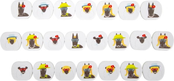 A 22 darab, figurákkal illusztrált kártya lehetővé teszi a klasszikus „Találd ki, ki vagyok” játékot, és memóriajátékhoz is használható – dupla adag szórakozás egy csomagban.