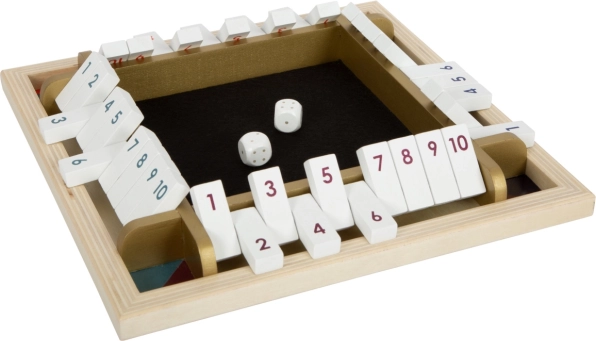 A klasszikus SHUT THE BOX modern változata, elegáns arany részletekkel, támogatja a gyerekeket a korai matematikai készségek, a logika és a figyelem fejlesztésében. Az 1–10-ig számozott, billenthető lapkák ösztönzik a kockadobások összegének gyakorlását és a gyors döntéshozatalt – mindezt játékos formában.