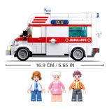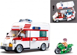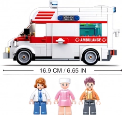 - Mentőautó építőkészlet, 3 figura, hordágy és kiegészítők, útmutató