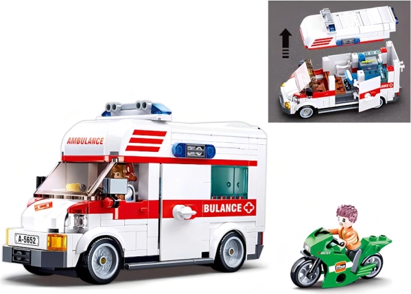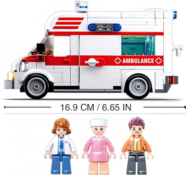 Építsd meg a saját mentőcsapatodat a Sluban Town mentőautó építőkészlettel. A szett 328 alkatrészt, 3 figurát mozgatható részekkel és egyszerű nehézségi szintet kínál 6 éves kortól. A 16,9 cm hosszú mentőautó, a hordágy és a kiegészítők támogatják a kreatív játékot és az elsősegély-jeleneteket. Az elemek tartós és biztonságos ABS műanyagból készülnek, és kompatibilisek a LEGO, COBI és Mega Bloks készletekkel.