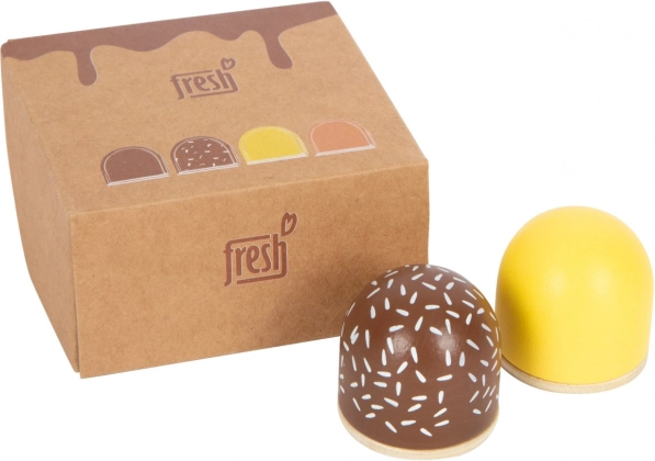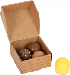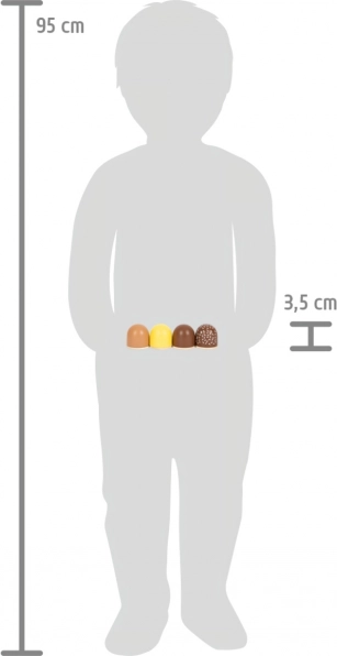 Négy praliné változat - fehér csokoládé, étcsokoládé, étcsokoládé szórással és tejcsokoládé - kellemesen frissítik a gyermekjátékokat. Természetes megjelenésük és öko karton csomagolásuk úgy lett kialakítva, hogy lenyűgözzék és inspirálják a gyerekeket a képzeletbeli játékhoz.